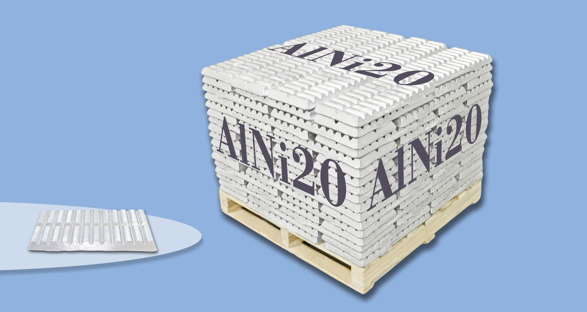 本品為含鎳18.0~22.0%的鋁鎳中間合金,用于鋁合金熔煉中鎳元素的添加,加入溫度低,成份控制準(zhǔn)確。
