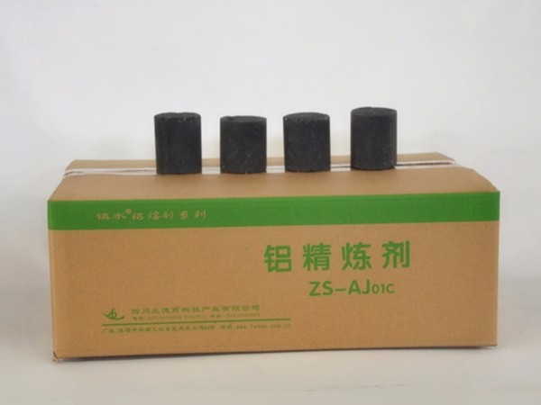Refining and purification: This product is used by the penetration method, accompanied with rolling molten aluminum. It can be easily used in crucible and small melting furnaces. Main model numbers are AJ01C and A102C, both of which are environmental friendly. This product is widely used in the casting industry: AJ04C is applicable to Al-Mg alloy refining and processing; AJ03C and AJ05C, with little off-gas, are used for castings with high requirement for air tightness.
