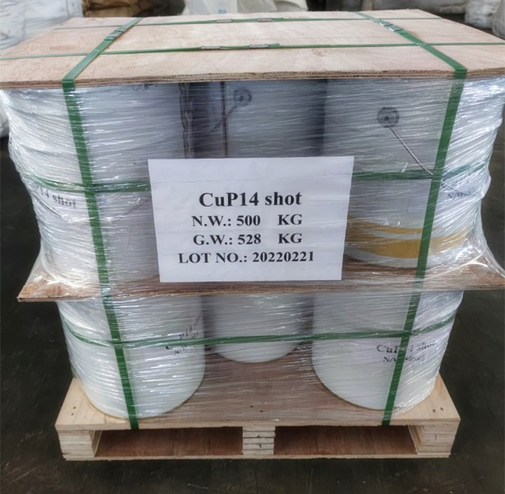Phosphorous content: 14~16%. Apply to the desulphuration treatment of copper and copper alloys in the process of smelting. Effectively remove the oxygen of copper alloy melt, obviously reducing the impurity content, improving the mechanic properties of the copper cast.