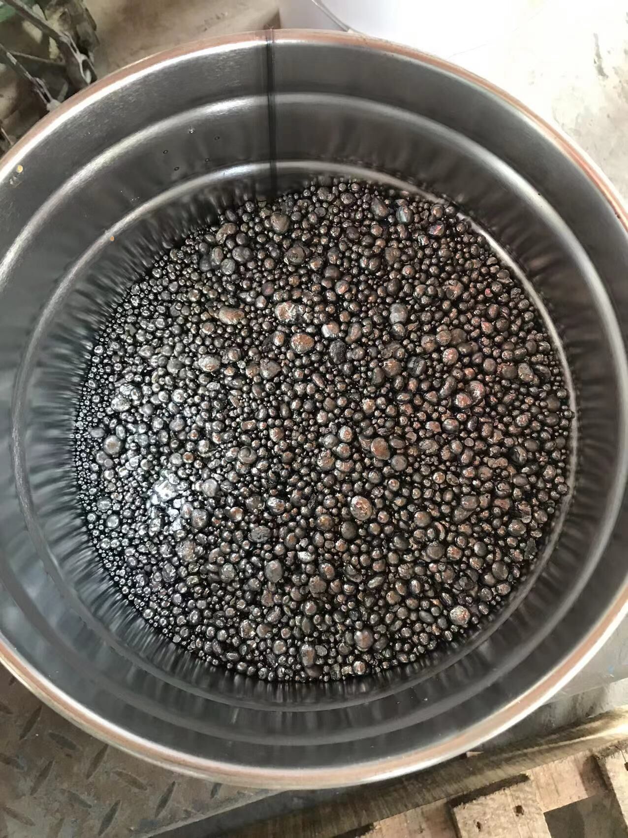 Appearance: metal nuggets. Shot or Waffle